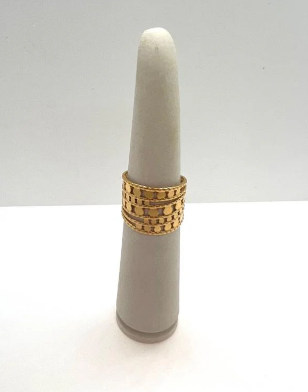 Anillo dorado clásico, con líneas suaves y simples.